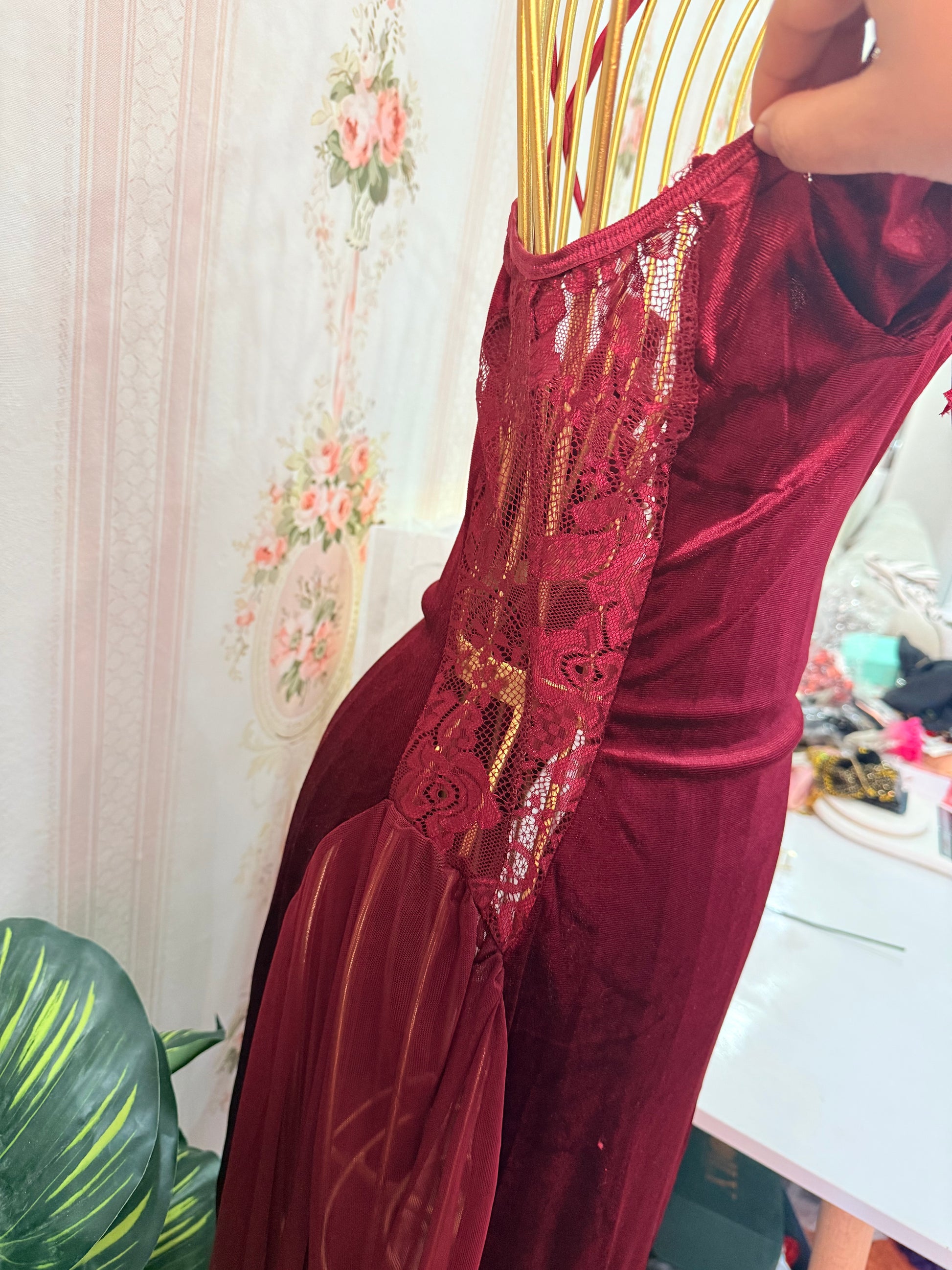 فستان قطيفه دانتيل