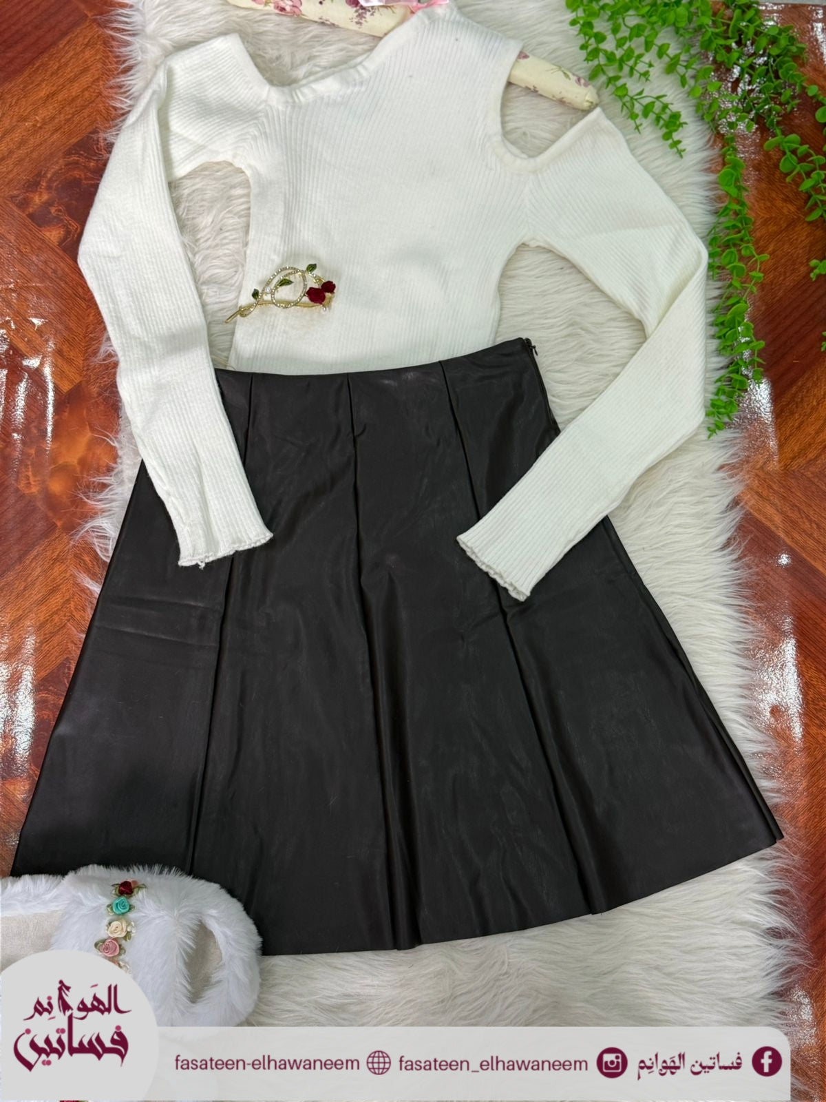 اسكيرت جلد كالوش مبطنة فرو