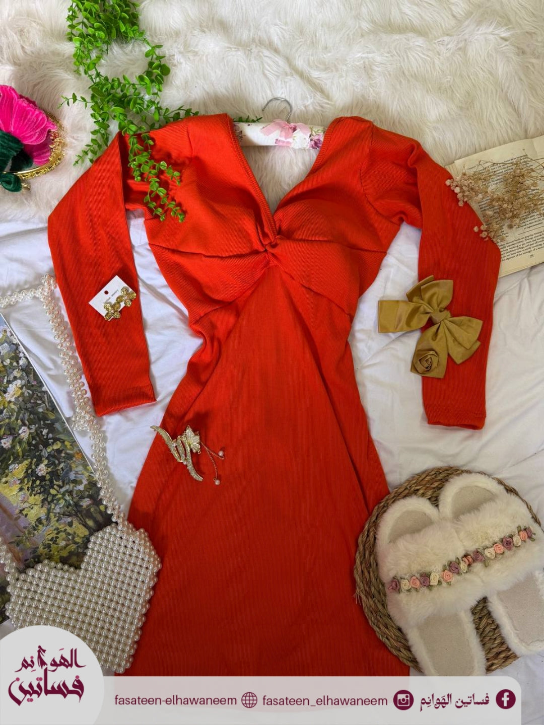 فستان صك بياخد شيب الجسم بربطة ظهر كبيرة وتصميم يلفت النظر من أول لحظة 😉