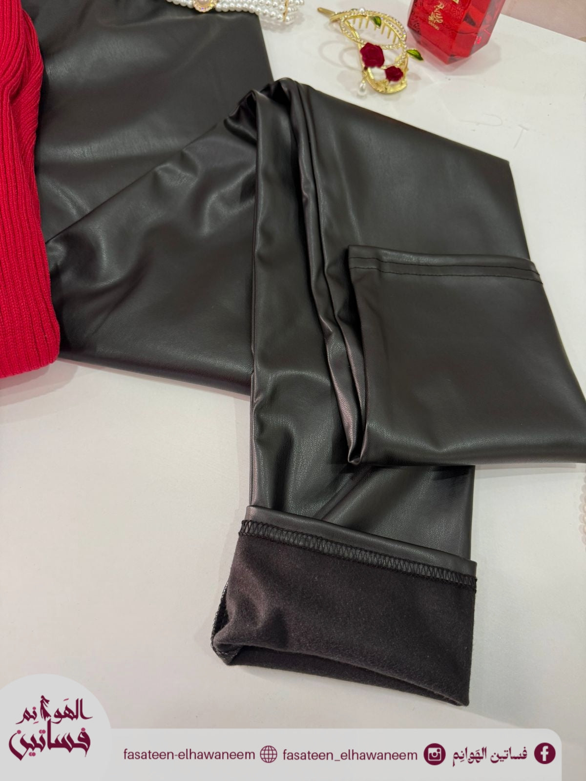 بنطلون جلد تحفه في اللبس بياخد شيب الجسم ومبطن م جوا بوبره خفيفه تدفي